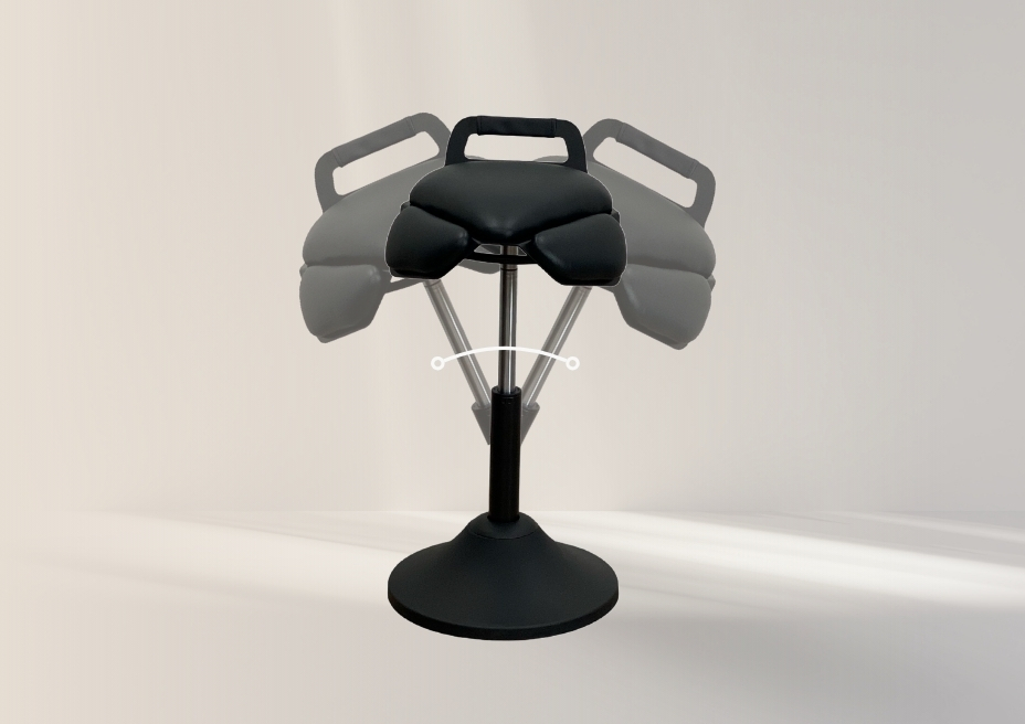 The Sway Shampoo Stool is designed for all-day support and flexibility. It features a built-in handle that doubles as a backrest, cushioned leaning pads to reduce strain, and smooth hydraulic height adjustment. With 360º swivel rotation, multi-directional tilt, and a durable base, it ensures comfort, ease of movement, and reliability in every salon setting.