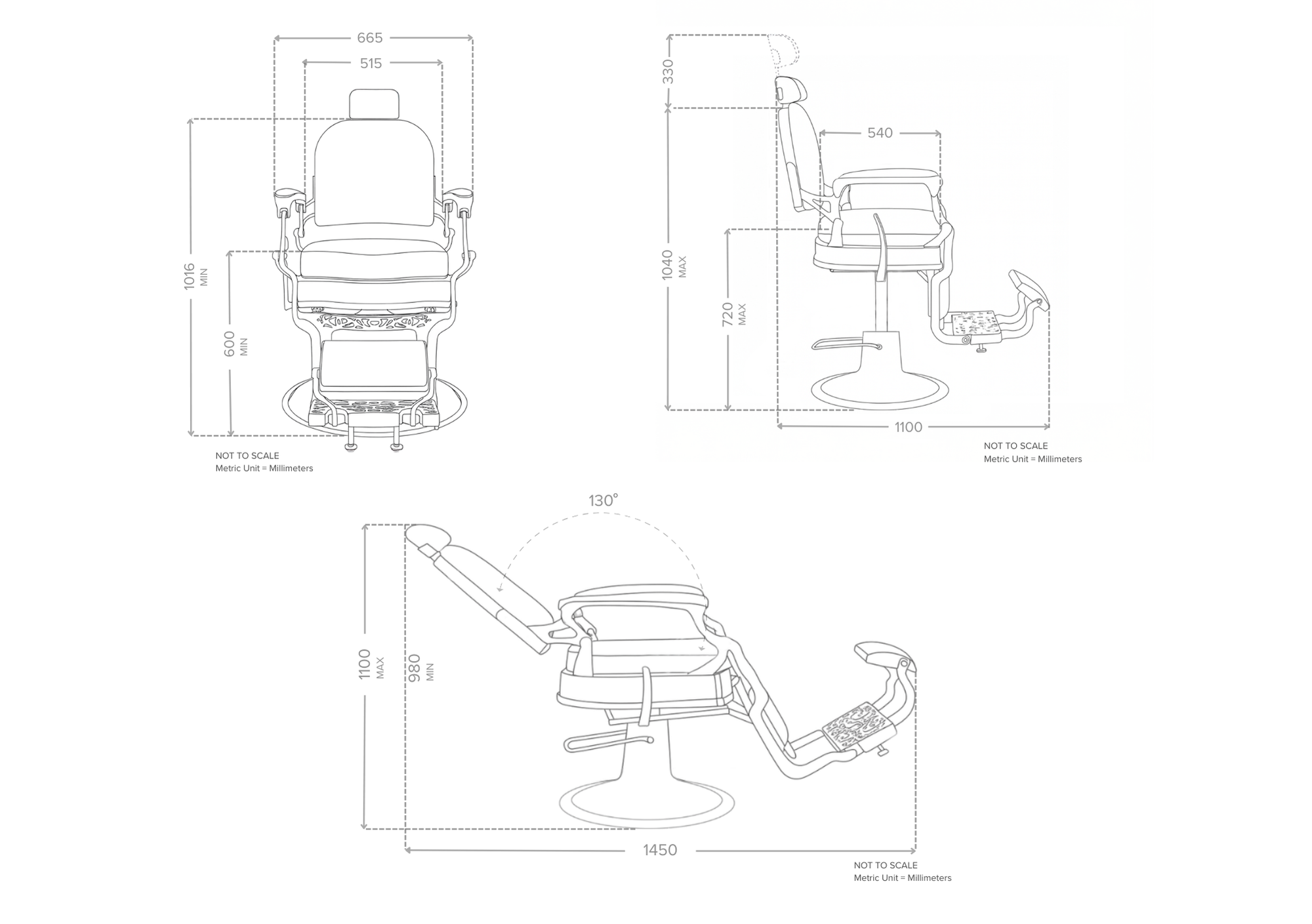 Height: Max 1040mm Min 1016mm